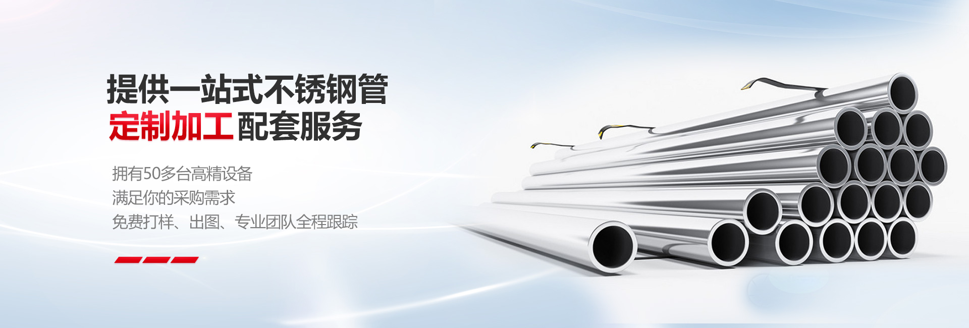 20名擁有豐富行業經驗的業務經理,為客戶提供專業的售前、售中、售后服務,讓客戶沒有后顧之憂。 自建有專業的物流團隊和配套加工服務,可以幫助可和進行不銹鋼管材的拉絲、激光切割、彎管、焊接、沖孔等配套加工,幫您省心接單。